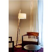 La lámpara de pie Linood Inclinada  es una lampara de estilo formal pero con una sabia combinación de elementos naturales como son la madera y el lino que ayudan a crear un ambiente cálido e intimista. Con una luminaria de presencia ligera, crea a través de su luz indirecta un ambiente cálido y sus características y personalidad hacen que se adapte tanto a espacios compartidos, como el salón, como al despacho, como al dormitorio generando intimidad y paz.