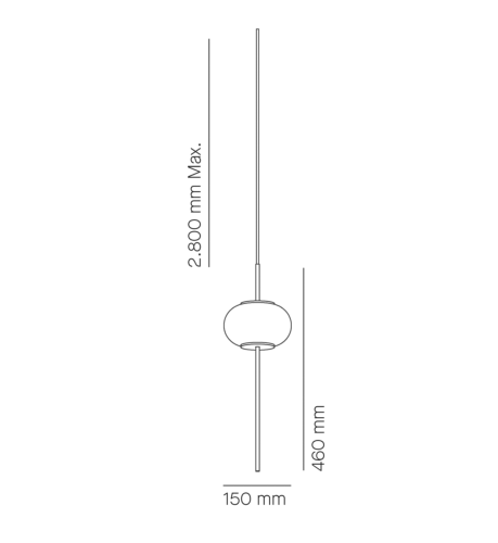Es una lámpara suspendida que se cuelga del techo y cuyo punto de luz proviene del mismo techo, con la posibilidad de tener una base de fijación al techo (se vende a parte,: florón de techo)  o bien de mantener el mecanismo escondido en el falso techo, de manera que sólo se vea el cable.